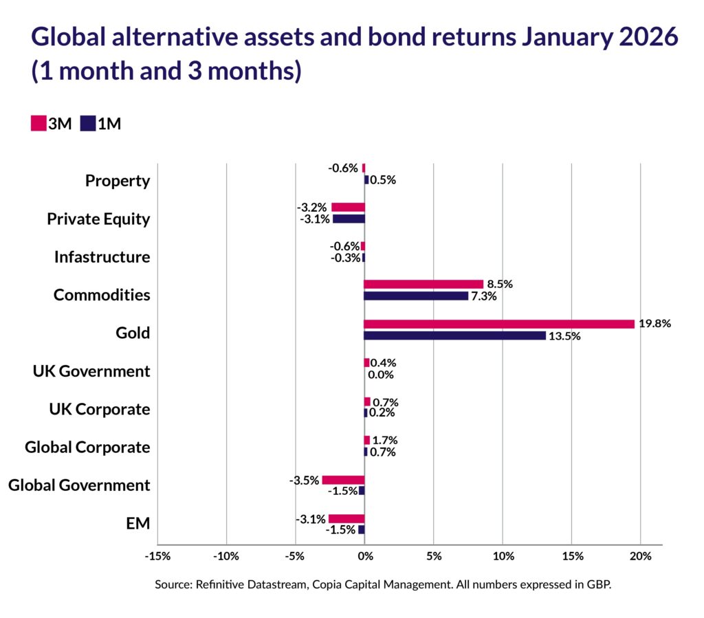 Although most equity regions brushed off all the political drama, gold rallied extremely hard on these tensions with the asset class +13.5% over January. More broadly, commodities had a strong month delivering a return of +7.3%. Oil and gas prices rallied over double digits on the back of colder winter weather and an associated fall in storage levels.