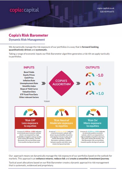 This information is intended for professional financial advisers only. Copia does not provide financial advice. This information is not intended as financial advice and should not be interpreted as such. Model investment portfolios may not be suitable for everyone. The value of funds can increase and decrease, past performance and historical data cannot guarantee future success. Investors may get back less than they originally invested.
