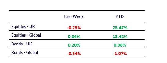 For regulated financial advisers and investment professionals only, Copia does not provide financial advice, and the contents of this document should not be taken as such. The performance of each asset class is represented by certain Exchange Traded Funds available to UK investors and expressed in GBP terms selected by Copia Capital Management to represent that asset class, as reported at previous Thursday 4:30pm UK close. Reference to a particular asset class does not represent a recommendation to seek exposure to that asset class. This information is included for comparison purposes for the period stated but is not an indicator of potential maximum loss for other periods or in the future.